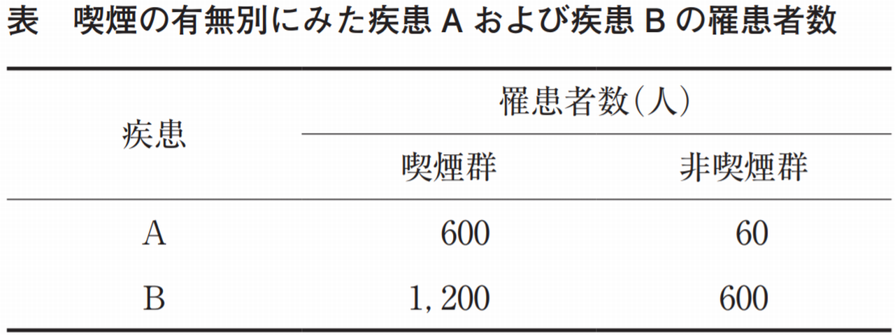 (4) 喫煙群における罹患者数は、疾患Bより疾患Aで多い。